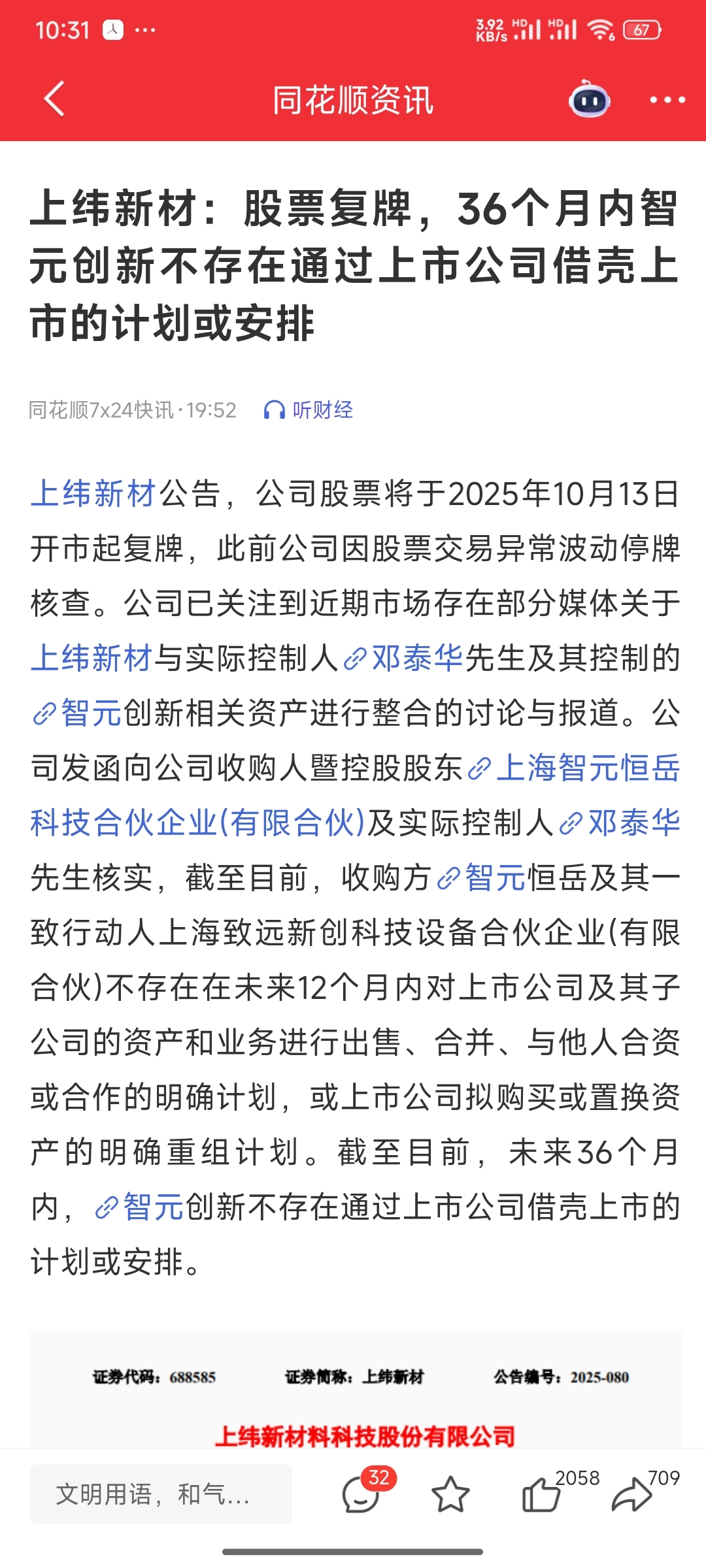 $上纬新材(SH688585)$ 给上纬正式判死刑了!至少跌五个一字板!