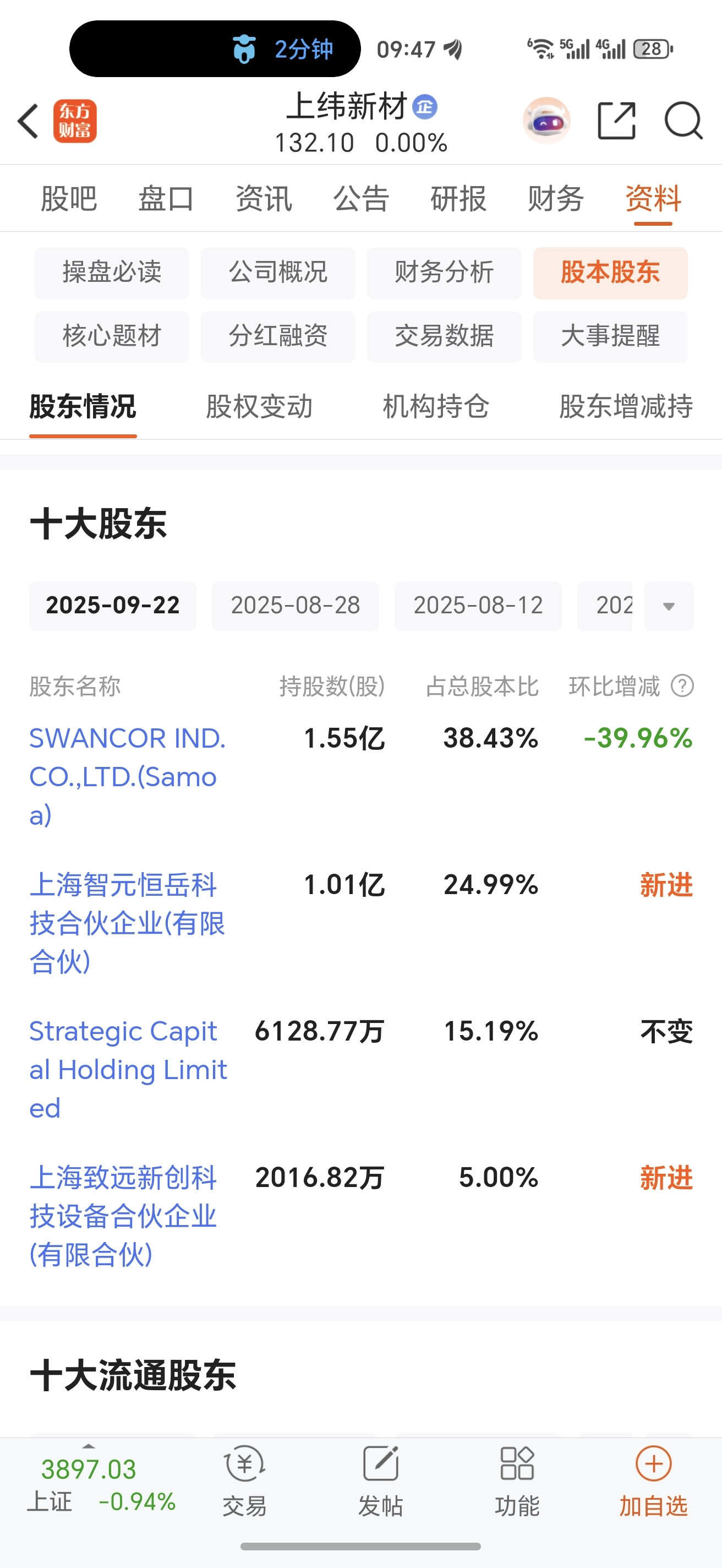 $上纬新材(SH688585)$ 第一大股东已经套现100多亿逃跑了周一开始大逃亡