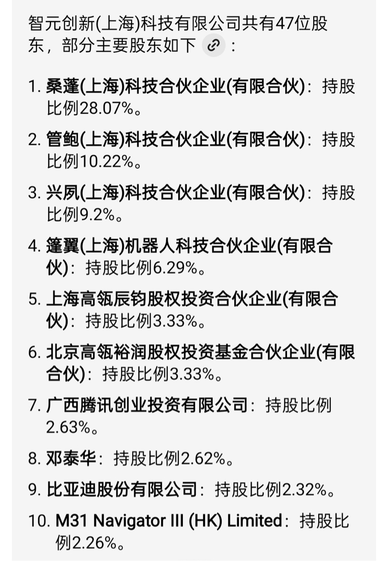 桑蓬科技的股东只有两位,一位是邓泰华,另一位彭志辉就是稚晖君,稚晖君持有桑蓬科技 13.79% 的股份,也就是说,稚晖君通过和邓泰华共同成立的 SPV,间接持有智元 3.87% 的股份。