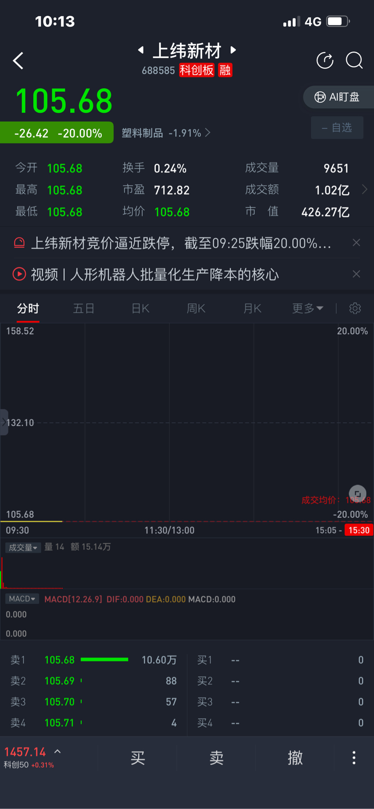 $上纬新材(SH688585)$ 为什么还有一亿多成交