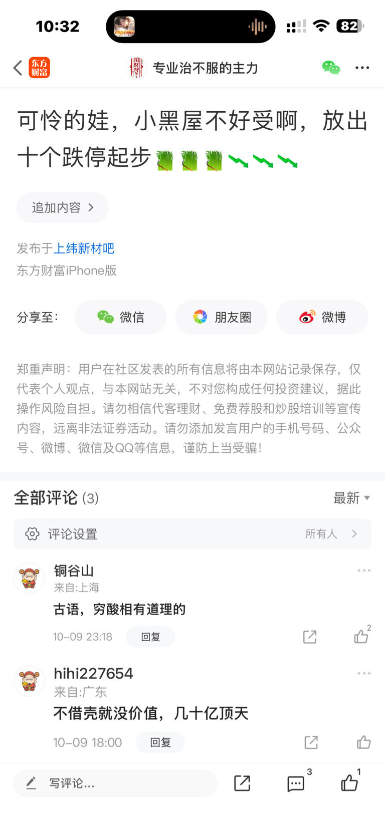 温馨提示: 1.根据《证券法》规定,禁止编造、传播虚假信息或者误导性信息,扰乱证券市场;2.用户在本社区发表的所有资料、言论等仅代表个人观点,与本网站立场无关,不对您构成任何投资建议。用户应基于自己的独立判断,自行决定证券投资并承担相应风险。《东方财富社区管理规定》