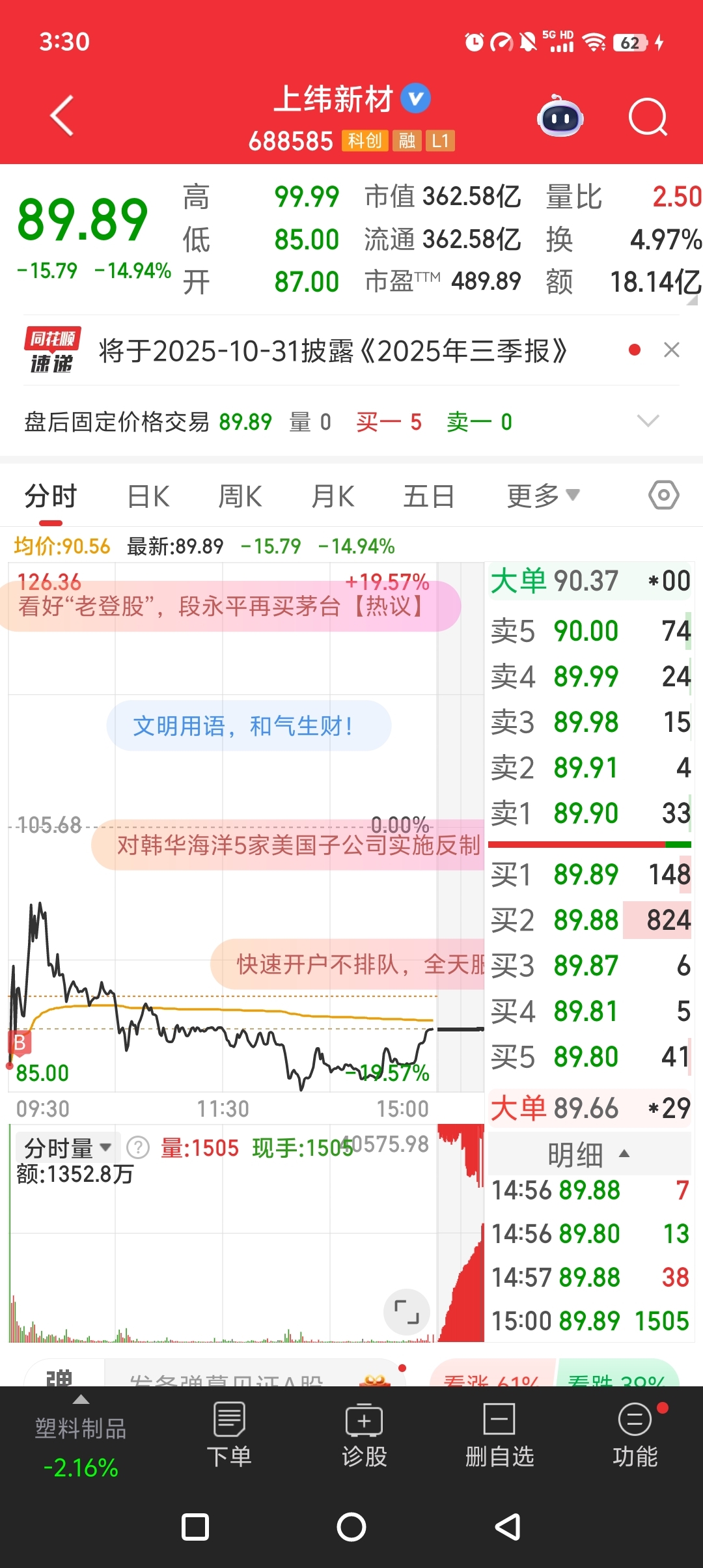 温馨提示: 1.根据《证券法》规定,禁止编造、传播虚假信息或者误导性信息,扰乱证券市场;2.用户在本社区发表的所有资料、言论等仅代表个人观点,与本网站立场无关,不对您构成任何投资建议。用户应基于自己的独立判断,自行决定证券投资并承担相应风险。《东方财富社区管理规定》