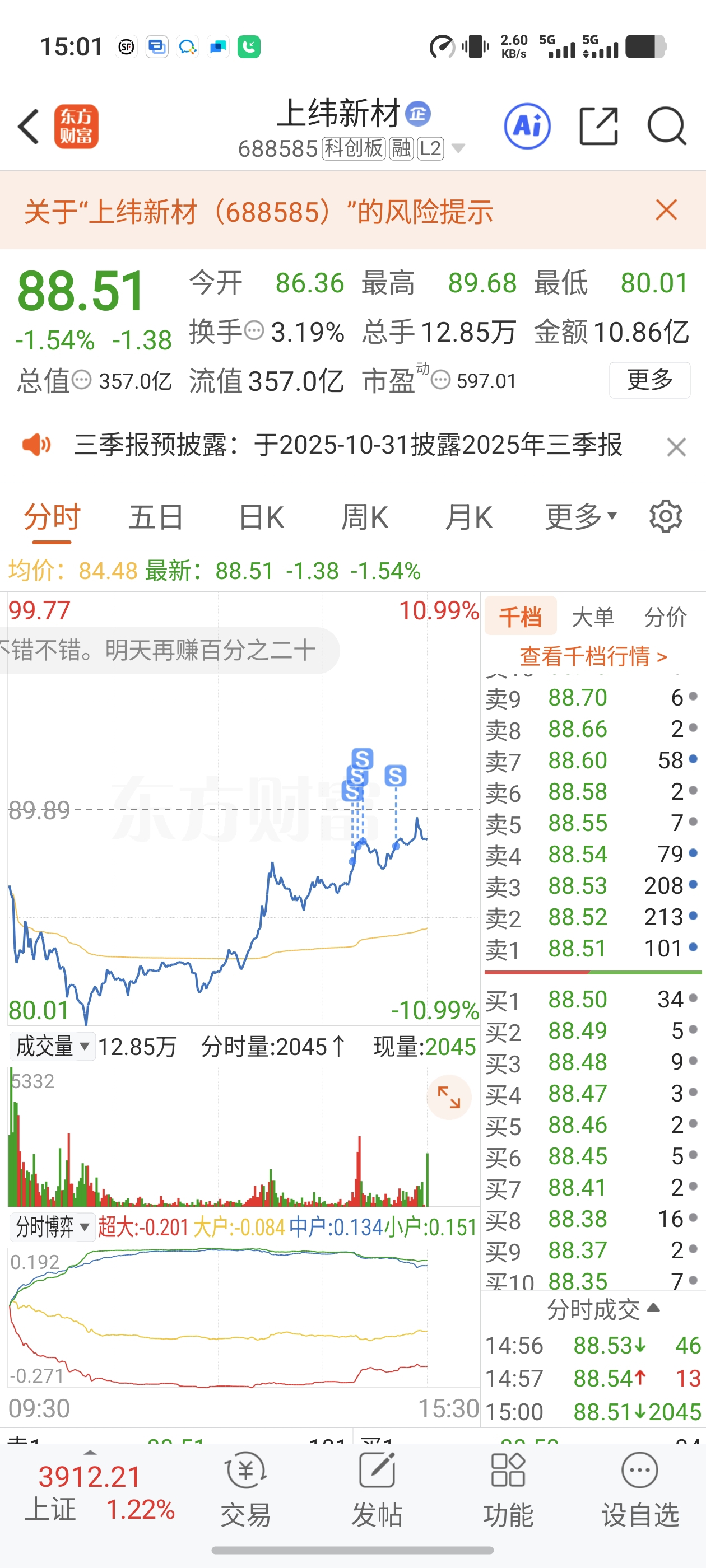 $上纬新材(SH688585)$ 满仓80早上都枯萎了感谢主力给个烟钱出来了