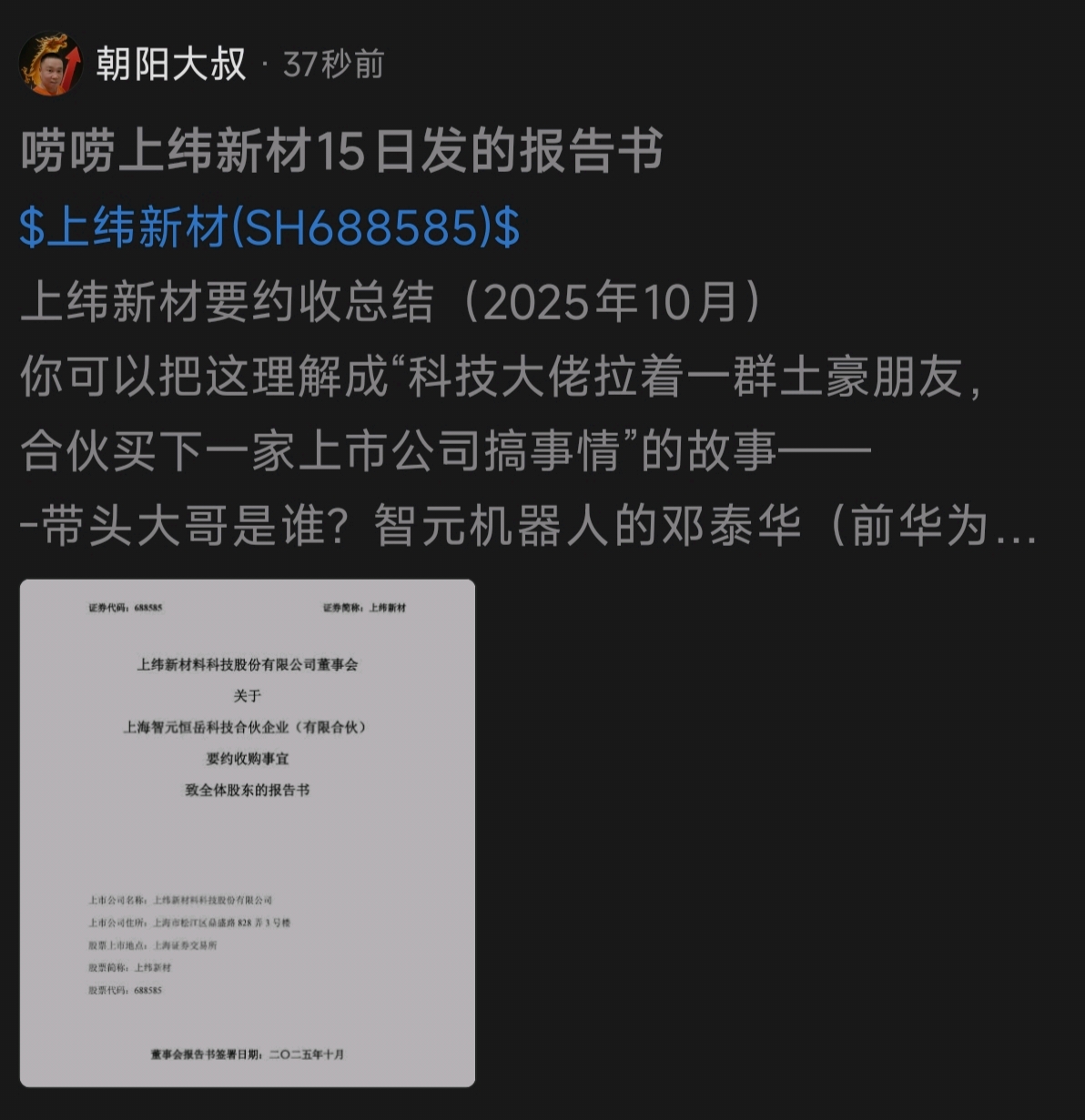 $上纬新材(SH688585)$ 这种画饼的出来,给散户提激情的,但凡出来任何时候卖出都是对的,无一例外,一定要拉黑这种,普天股份明天继续跌停,上纬明天继续下跌这是基本常识,不不要抱有任何幻想