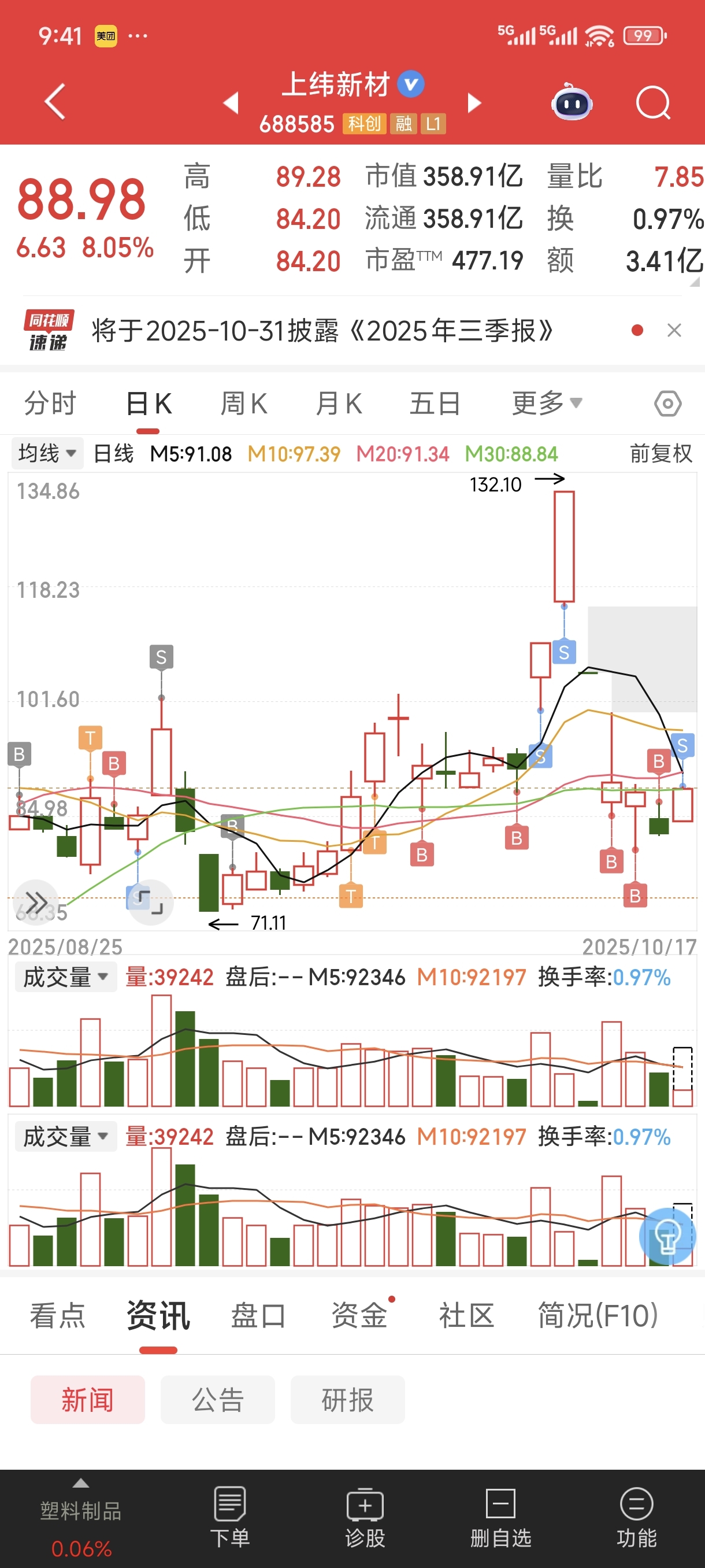 $上纬新材(SH688585)$ 跑吧,真的还要下来