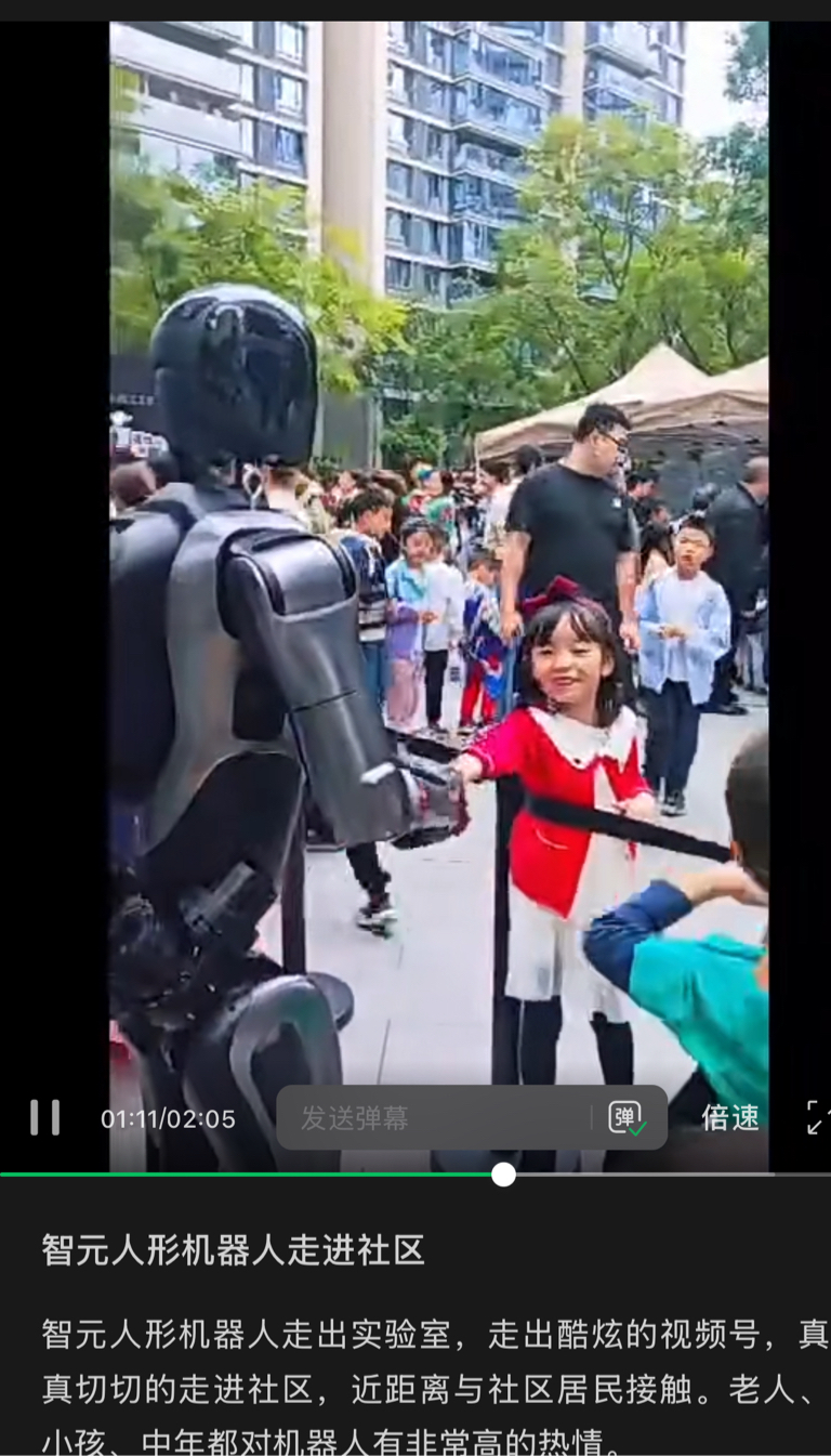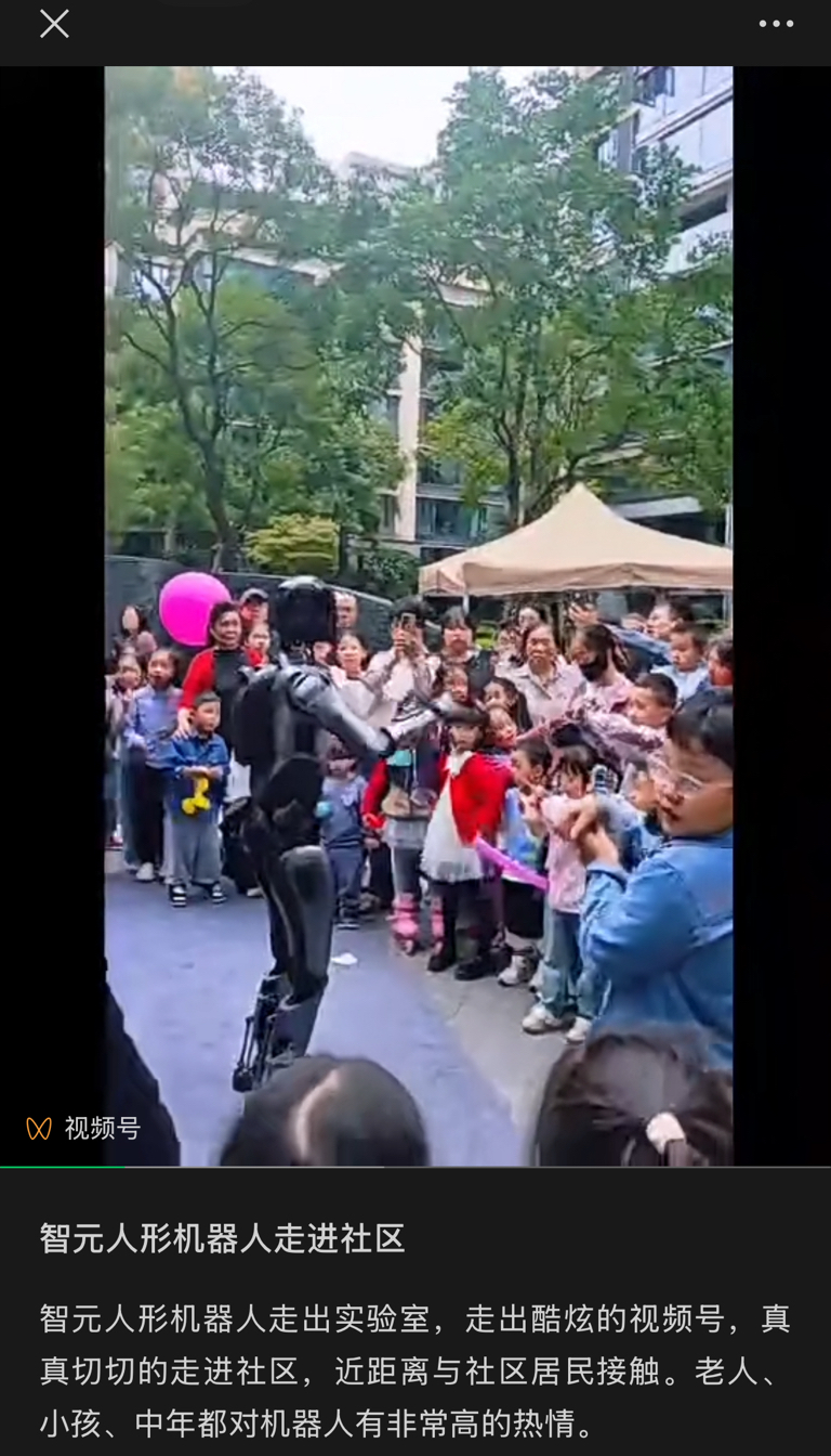 智元人形机器人走进社区智元人形机器人走出实验室,走出酷炫的视频号,真真切切的走进