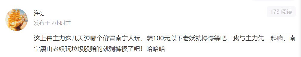 温馨提示: 1.根据《证券法》规定,禁止编造、传播虚假信息或者误导性信息,扰乱证券市场;2.用户在本社区发表的所有资料、言论等仅代表个人观点,与本网站立场无关,不对您构成任何投资建议。用户应基于自己的独立判断,自行决定证券投资并承担相应风险。《东方财富社区管理规定》