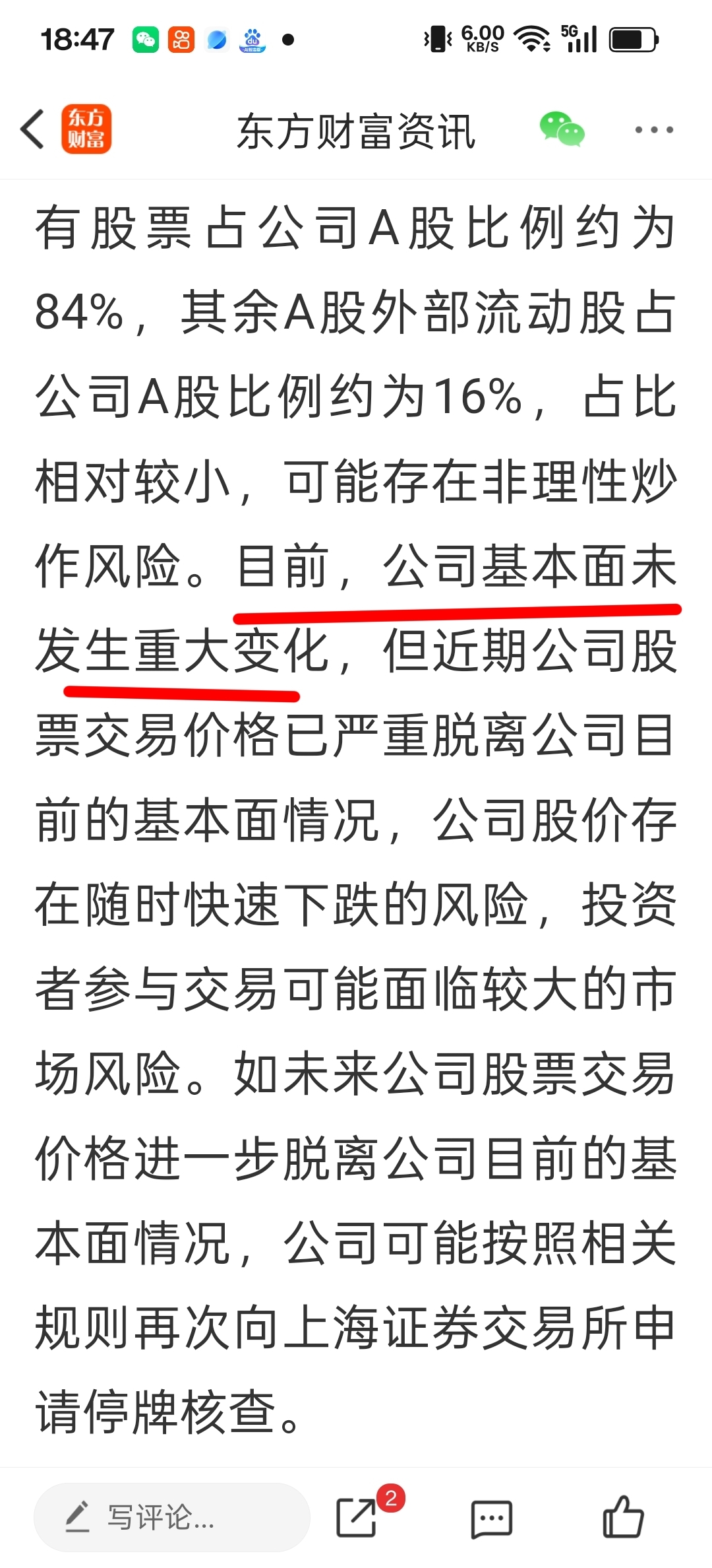 “目前”公司基本面没有发生重大变化?