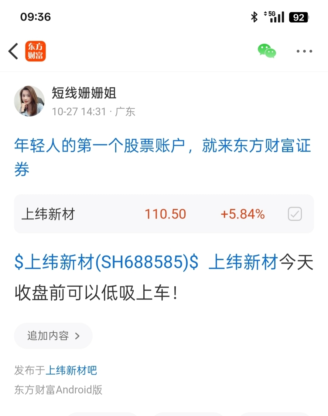 $上纬新材(SH688585)$ 昨天叫大家低吸上车的,今天就有不错的收获了!!!!