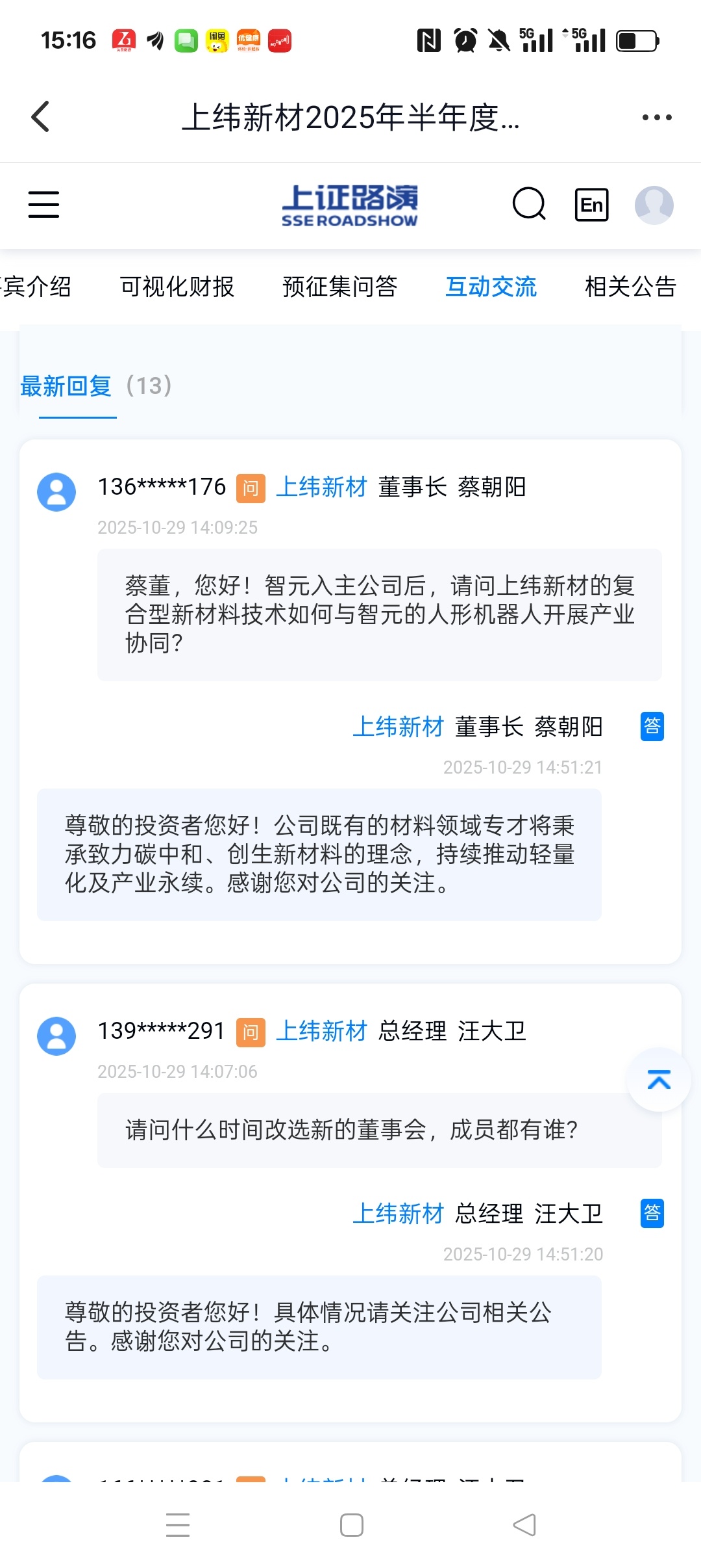 1.蔡总官方回应轻量化复合材料是智元机器人和上纬新材的产业协同点!