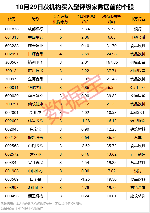 据证券时报·数据宝统计,今日机构研报共发布328条买入型评级记录,共涉及237只个股。成都银行关注度最高,共获7家机构给予买入型评级。