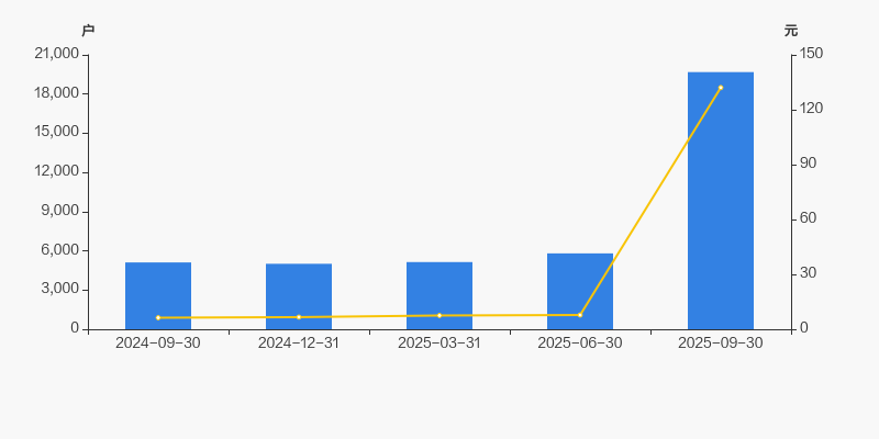 自2024年12月31日以来,公司股东户数连续3期上涨,截至目前增幅为292.85%。2024年12月31日至2025年9月30日区间股价上涨1891.60%。