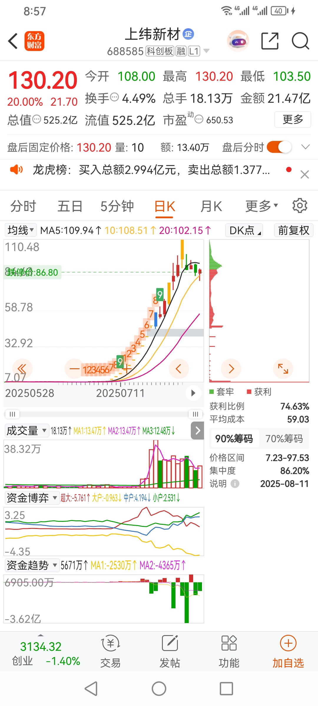 方军最牛科创板,上纬新材,20个涨停板,9转系统上涨邢台,股性活跃