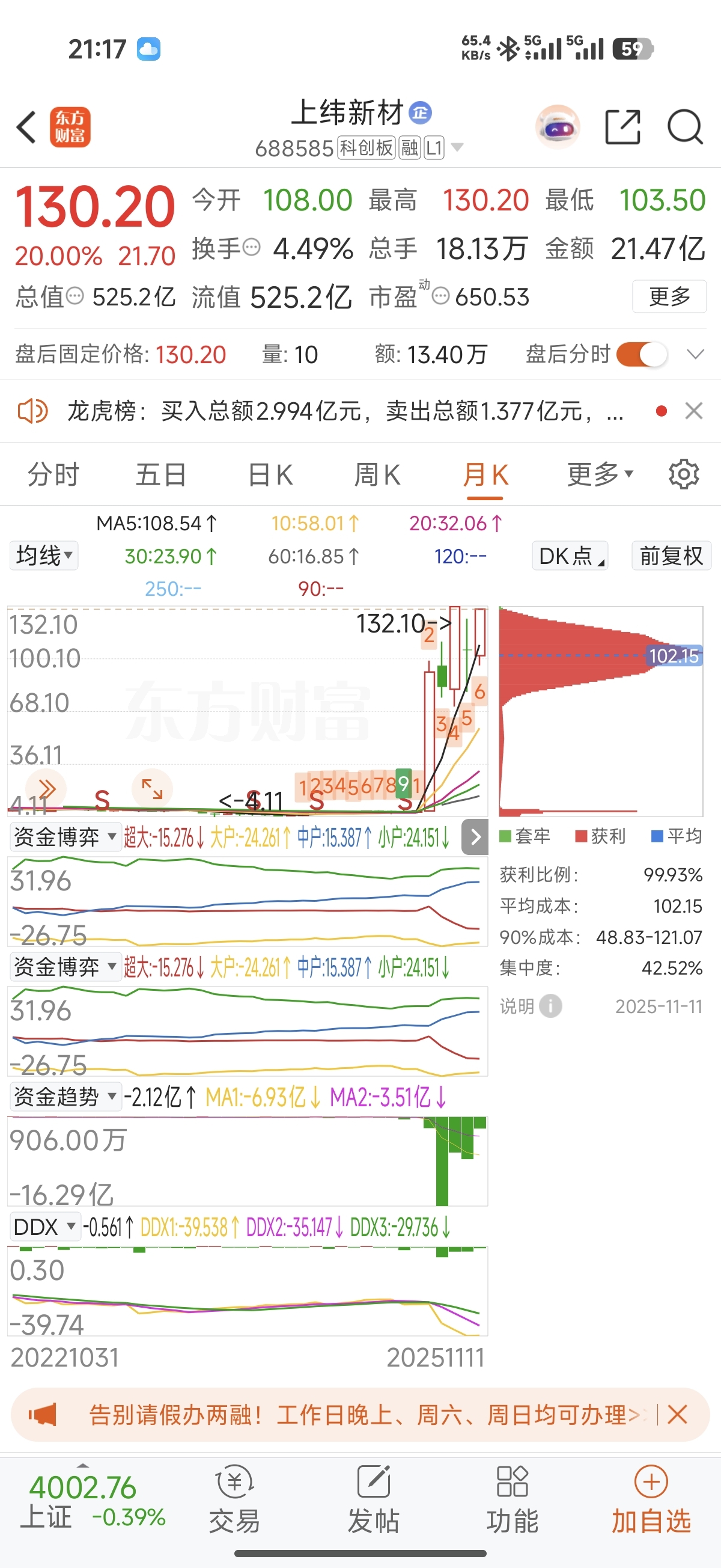 $上纬新材(SH688585)$ 一百,一百 除了100还是100。