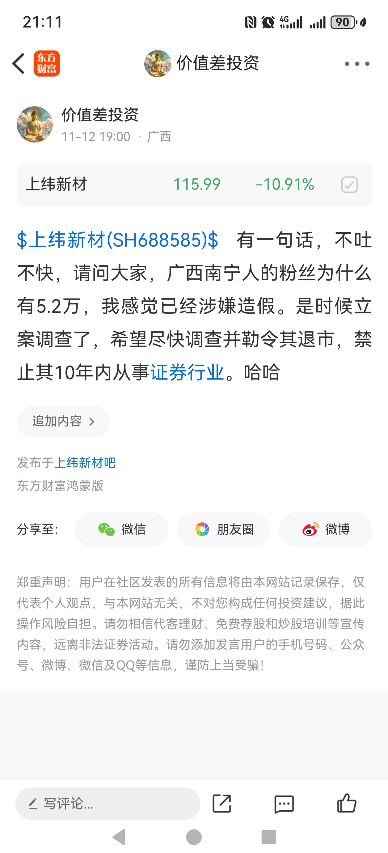 温馨提示: 1.根据《证券法》规定,禁止编造、传播虚假信息或者误导性信息,扰乱证券市场;2.用户在本社区发表的所有资料、言论等仅代表个人观点,与本网站立场无关,不对您构成任何投资建议。用户应基于自己的独立判断,自行决定证券投资并承担相应风险。《东方财富社区管理规定》