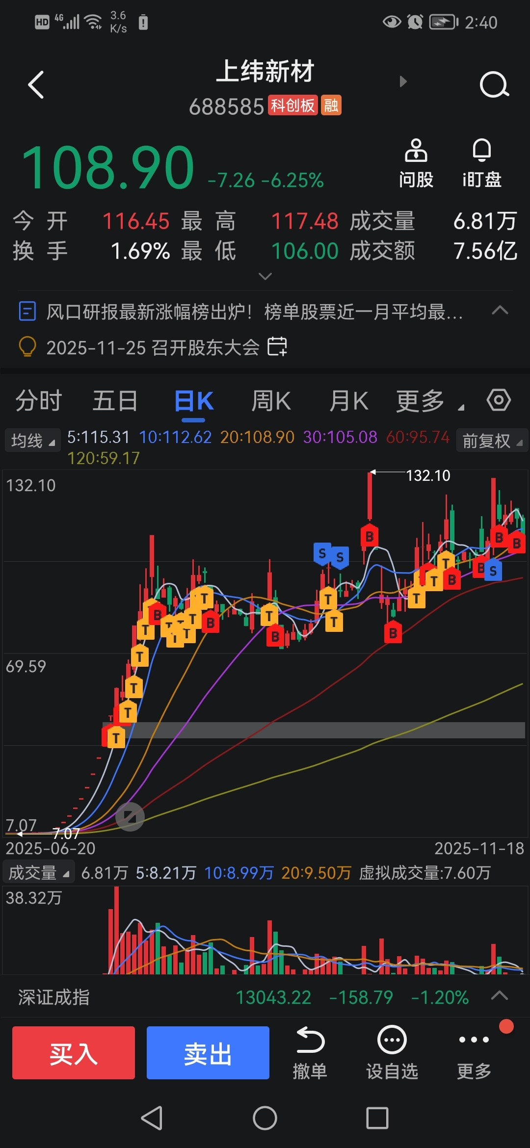 今日卖的明天不定能低于今日接回,过几日它又会回升至120以上,我就是知道,这只股