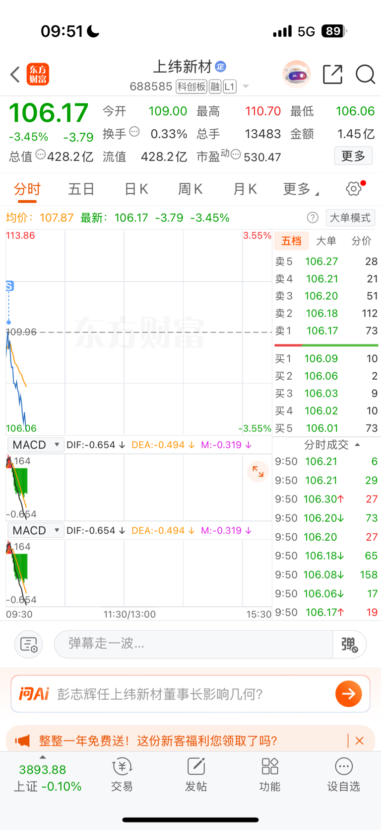 $上纬新材(SH688585)$ 110跑了,各品牌机器人太多了,你们玩吧
