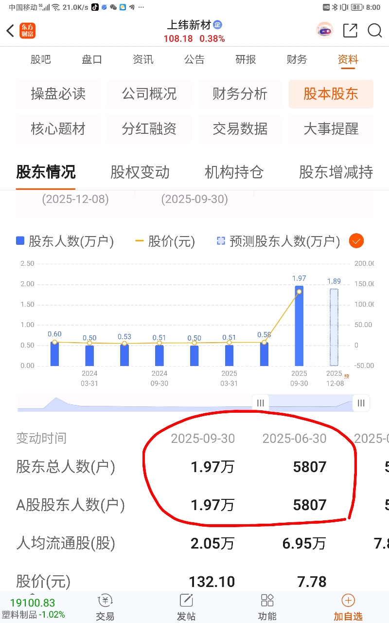 三个月股东人数增加两三倍,下周股东人数又创新高了,主力顺利让散户当接盘侠。