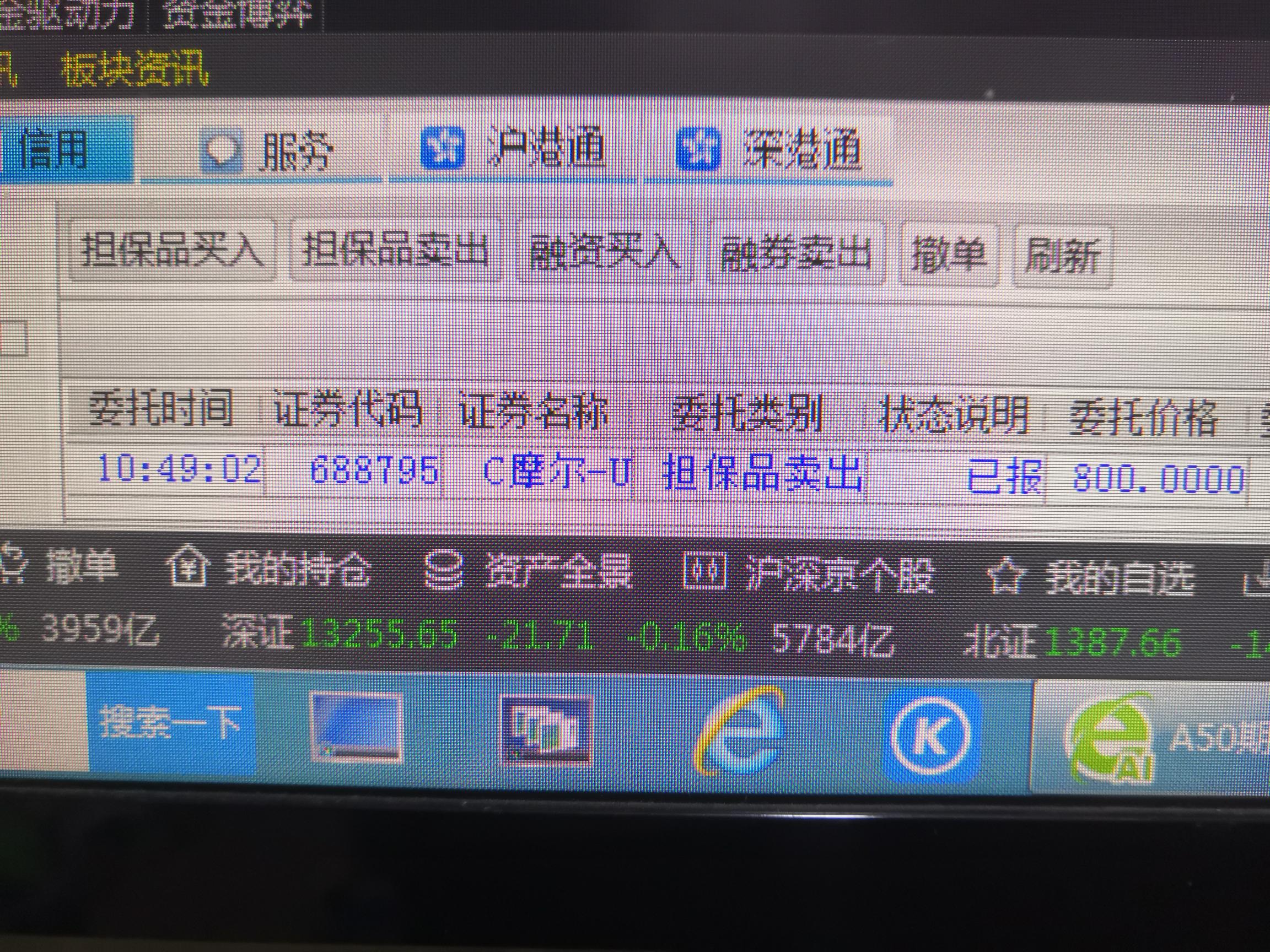 今日开盘减仓上纬,委托800卖出摩尔不知下午能否成交