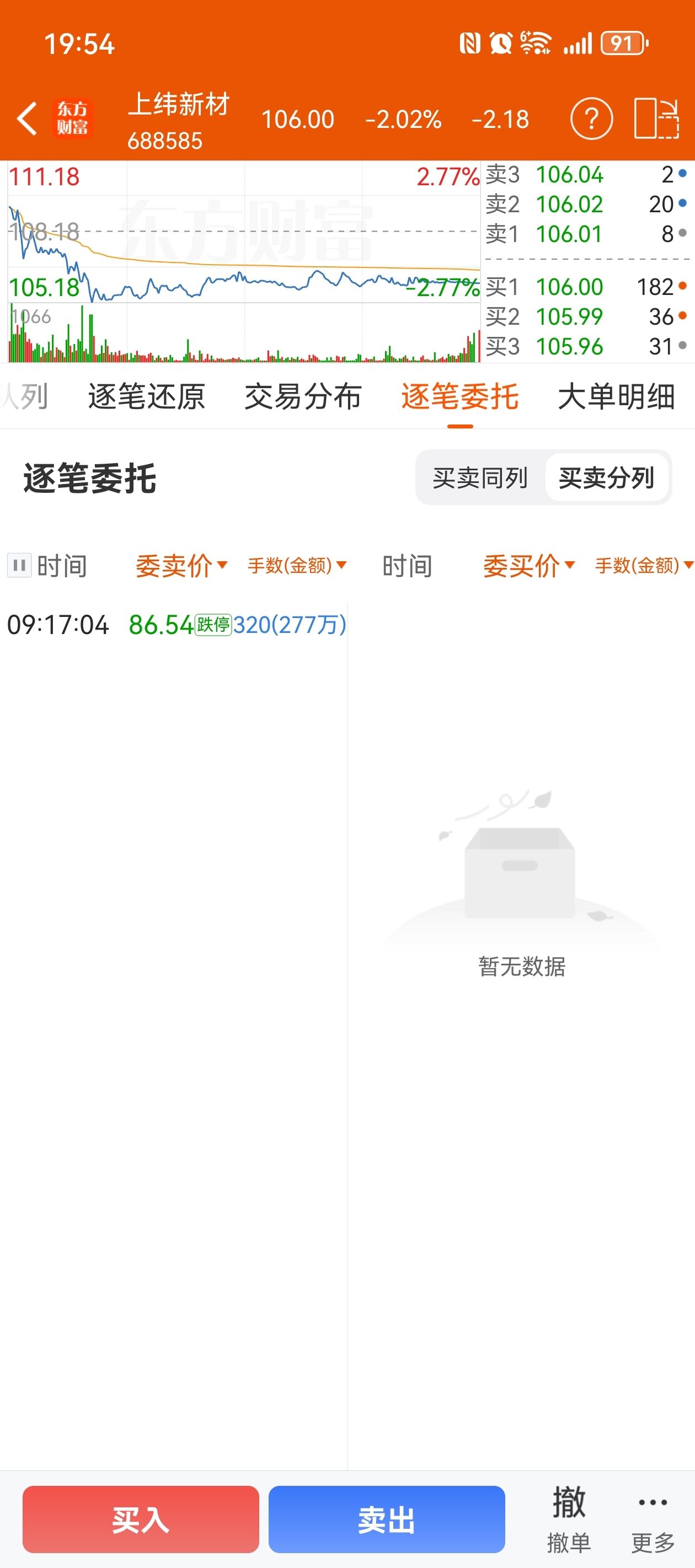 $上纬新材(SH688585)$ 集合竞价阶段既然打了跌停价卖出就不要撤单啊,我都已经打价买入了,有多少我收多少,明天记得别撤了