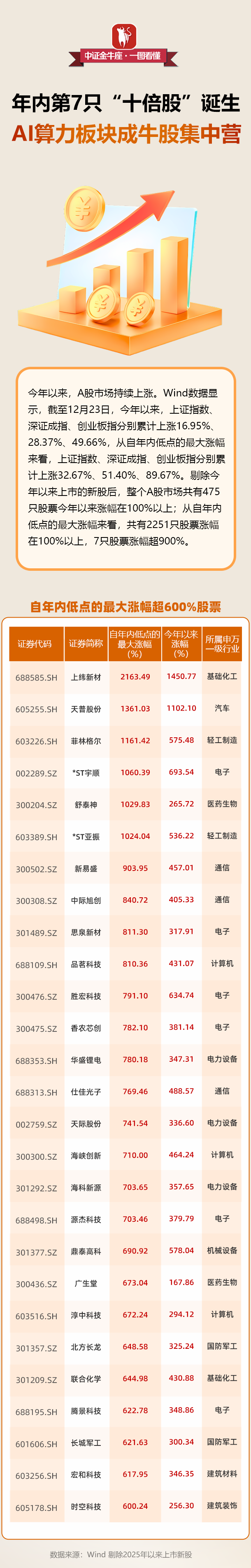 【一图看懂】年内第7只“十倍股”诞生 AI算力板块成牛股集中营