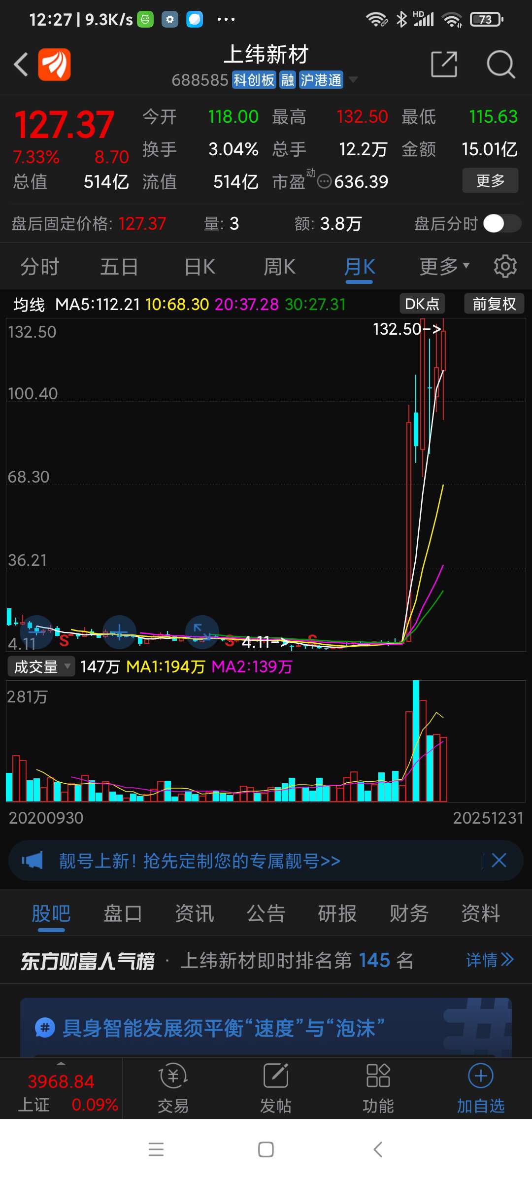 上普新材,25年沪深股市涨幅第一牛股,沪深股市十大牛股中,上海本地板块(共有44