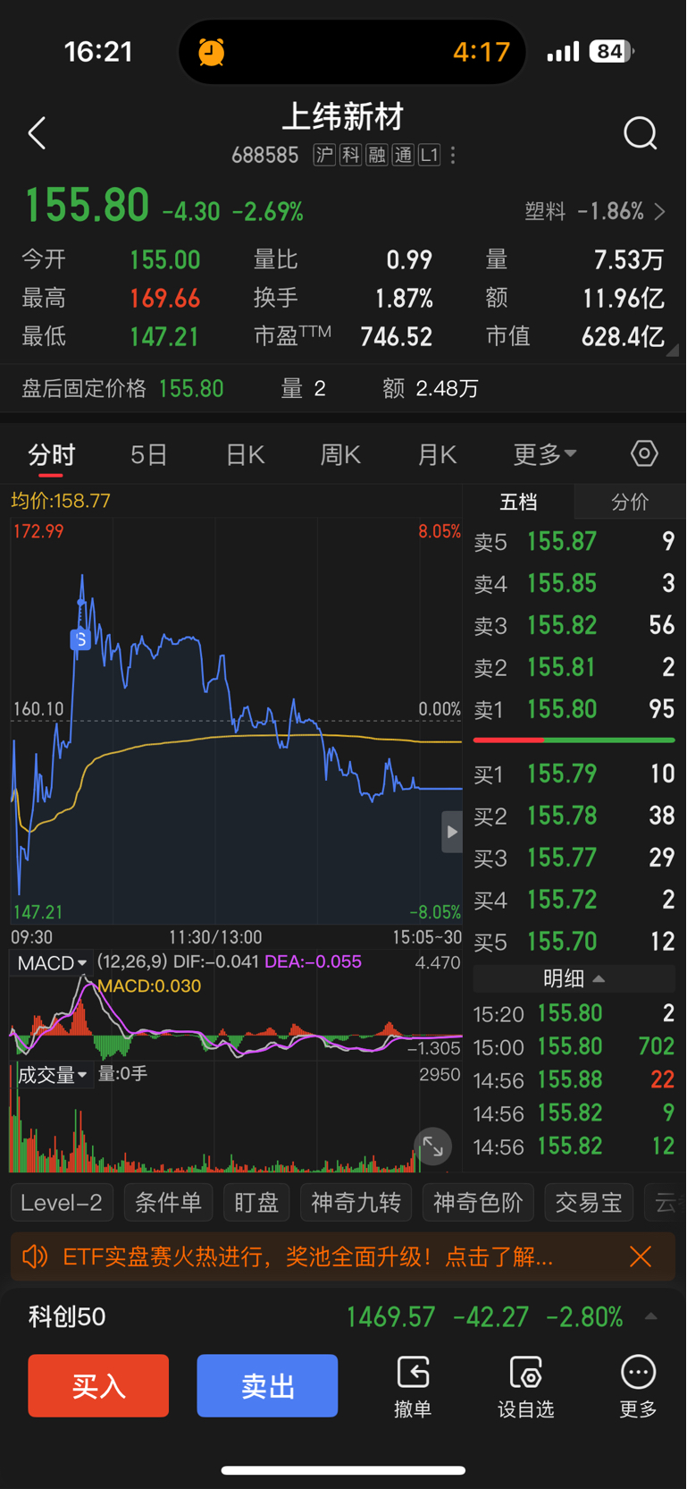 $上纬新材(SH688585)$ 卖的少了,还是感情站上峰!