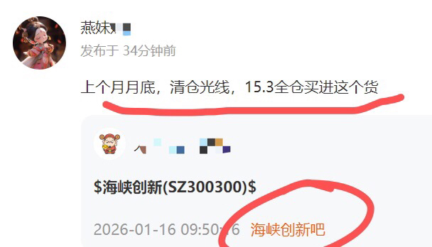 $上纬新材(SH688585)$ 可怜的燕妹妹, 去年就盲目听信海老鼠的推荐高位接盘了光线,结果套了11个月前几天割肉了,结果又听海老鼠的买入了海峡,这种不分真假的真是没救了,哎;