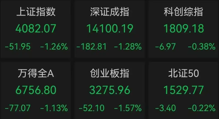 A股蛇年最后一个交易日收官。截至2月13日收盘,上证指数跌1.26%,失守4100点,深成指跌1.28%,创业板指跌1.57%。沪深两市成交额不足2万亿元,较前一个交易日缩量约1590亿元,超3800只个股下跌。