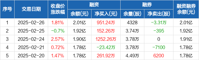 江航装备:融资余额2.01亿元,创近一年新高(02-26)