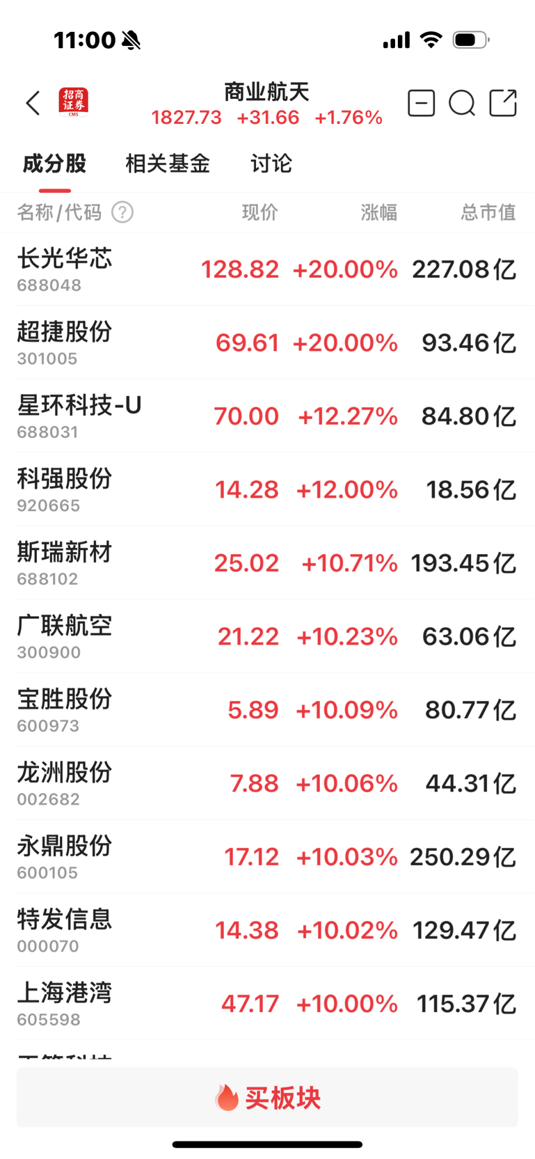 今天板块更猛,商业航天是最近板块里最靓的仔了