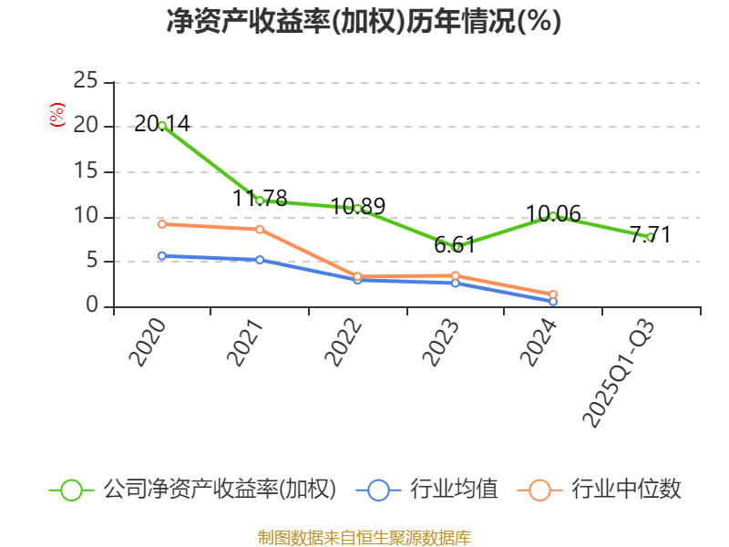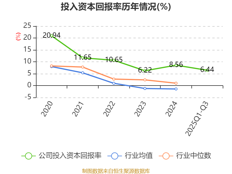 盈利能力方面, 2025年前三季度公司加权平均净资产收益率为7.71%,同比下降2.19个百分点。公司2025年前三季度投入资本回报率为6.44%,较上年同期下降1.9个百分点。