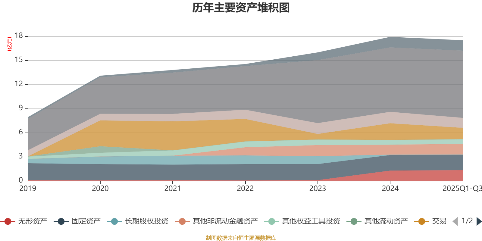 资产重大变化方面,截至2025年三季度末,公司交易性金融资产合计较上年末减少31.95%,占公司总资产比重下降3.5个百分点;货币资金较上年末增加4.33%,占公司总资产比重上升3.06个百分点;应收票据及应收账款较上年末减少12.87%,占公司总资产比重下降0.86个百分点;其他非流动金融资产较上年末增加6.34%,占公司总资产比重上升0.61个百分点。