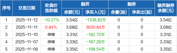 凌志软件:融资净偿还1338.82万元,融资余额3.54亿元(11-12)
