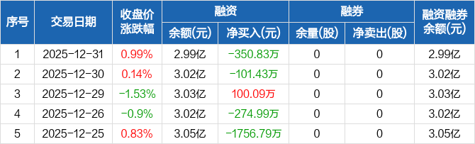 凌志软件:融资净偿还350.83万元,融资余额2.99亿元(12-31)