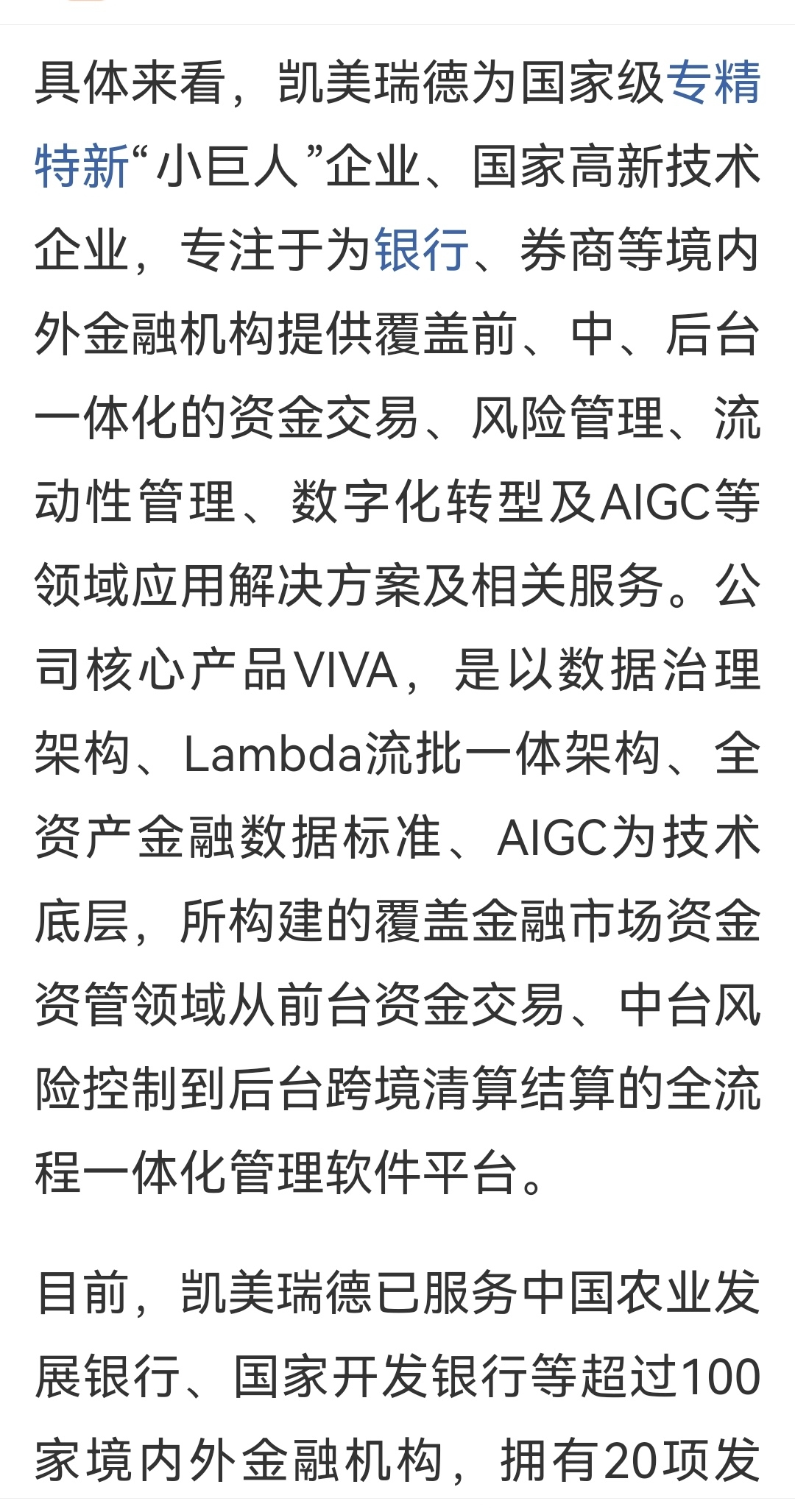 凌志软件正在推进资产重组,100%收购凯美瑞德,金融IT小巨人,曾经拟IPO证券辅导过的,凯美瑞德服务众多国内外银行,并购重组后,将显著提升公司业绩。目前资产重组大爆发,嘉美包装,锋龙股份,胜通能源等都因资产重组而大涨,超10连板啦!