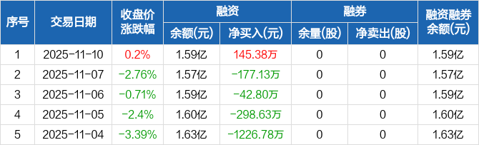新致软件:融资净买入145.38万元,融资余额1.59亿元(11-10)