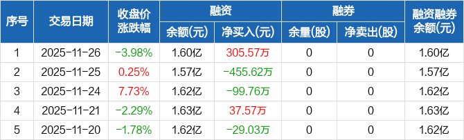 新致软件:融资净买入305.57万元,融资余额1.6亿元(11-26)