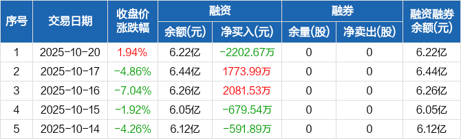 泰凌微:融资净偿还2202.67万元,融资余额6.22亿元(10-20)