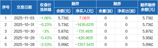 泰凌微:融资净买入7.08万元,融资余额5.73亿元(11-03)