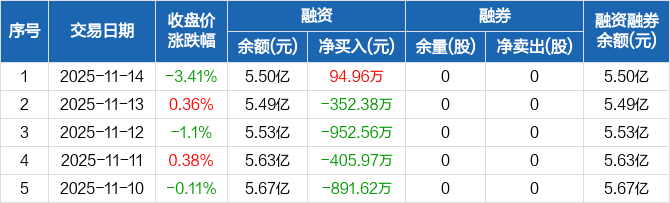 泰凌微:融资净买入94.96万元,融资余额5.5亿元(11-14)