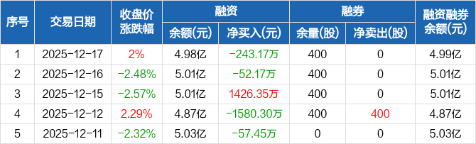 泰凌微:融资净偿还243.17万元,融资余额4.98亿元(12-17)