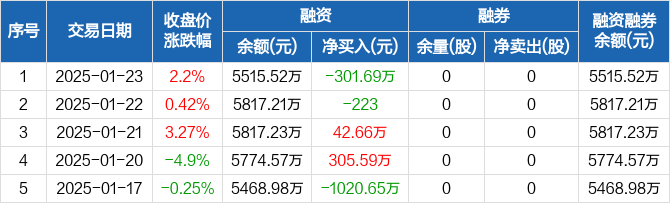 司南导航:融资净偿还301.69万元,融资余额5515.52万元(01-23)
