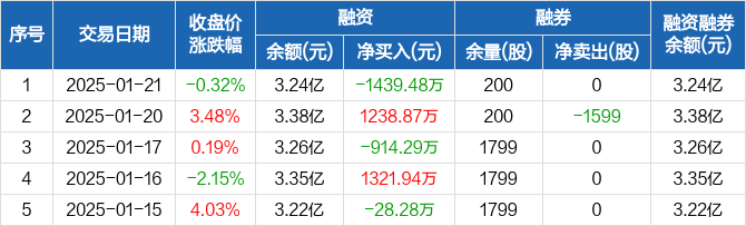 新相微:融资净偿还1439.48万元,融资余额3.24亿元(01-21)