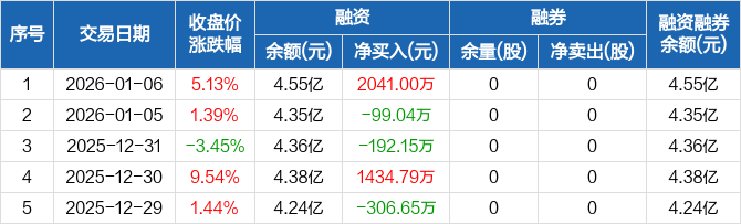 新相微:融资净买入2041万元,融资余额4.55亿元(01-06)