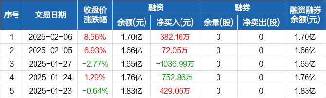 芯海科技:融资净买入382.16万元,融资余额1.7亿元(02-06)