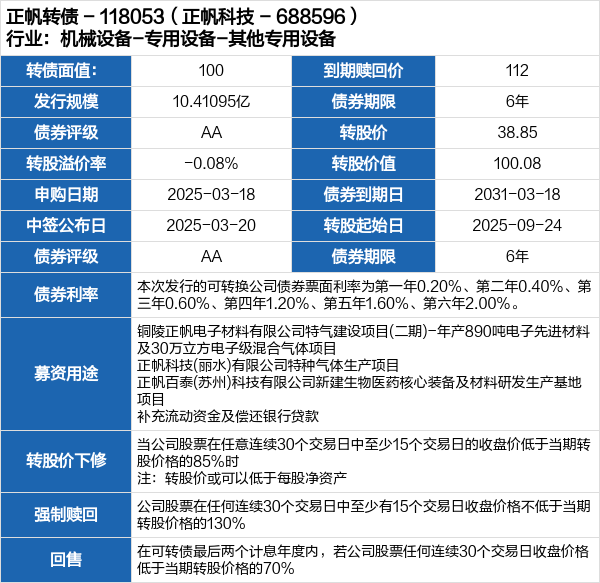 正帆转债申购提示(3-18)