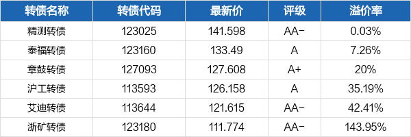 当前正帆转债溢价率 = 100% *(债券面值 / 转股价值 - 1) = 100% *(100 / 100.08 - 1) = -0.08%。结合行业、评级等因素后筛选出如下相似转债: