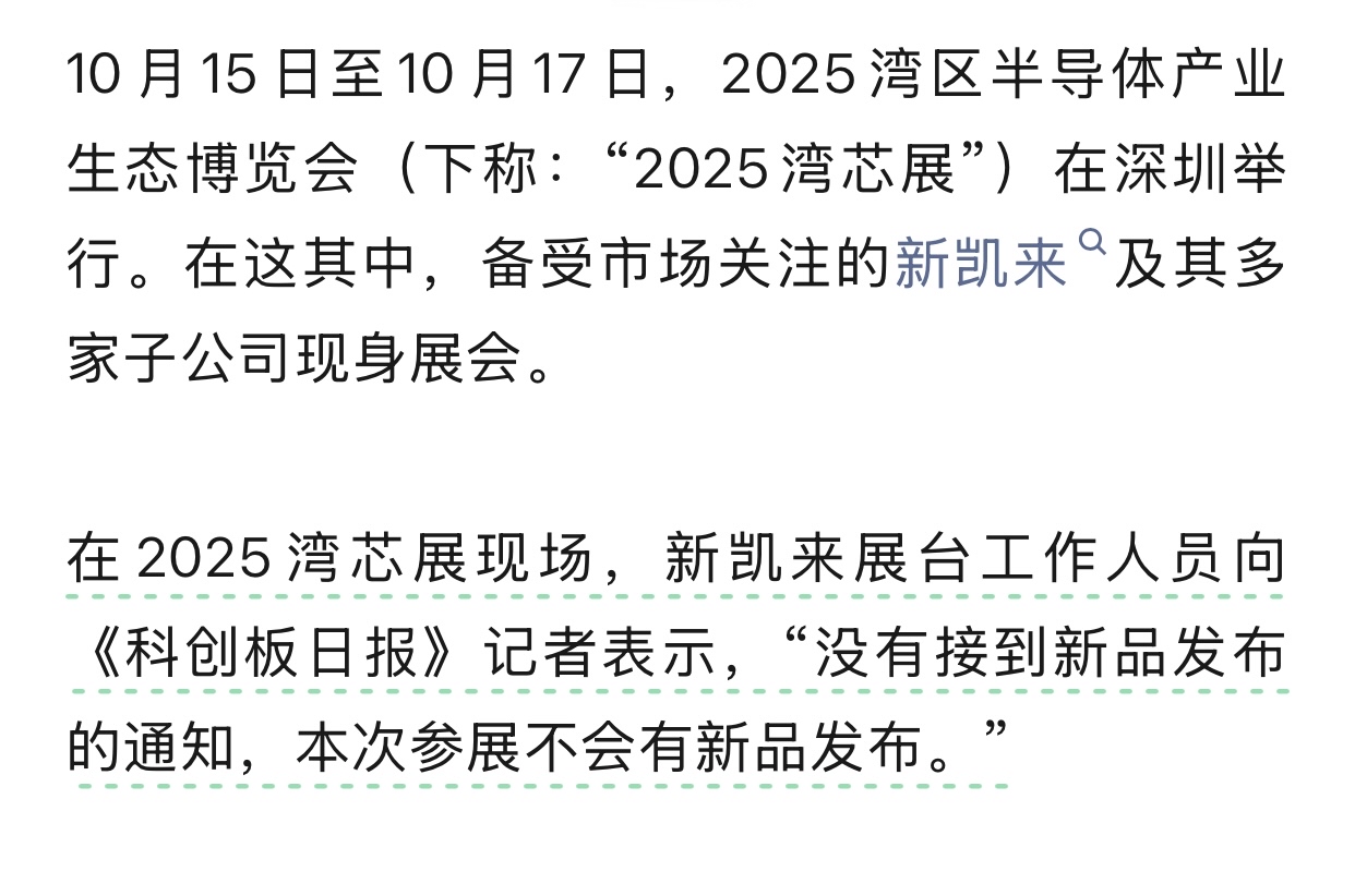 $正帆科技(SH688596)$ 在2025湾芯展现场,新凯来展台工作人员向《科创板日报》记者表示,“没有接到新品发布的通知,本次参展不会有新品发布。”