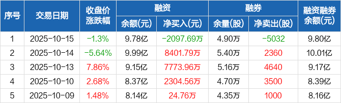 正帆科技:融资净偿还2097.69万元,融资余额9.78亿元(10-15)